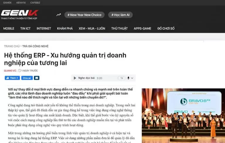 BRAVO 8R3 (ERP-VN) ứng dụng nhiều công nghệ hiện đại, giúp quản lý hoạt động của tất cả phòng ban, nhận Sao Khuê 2024 trong