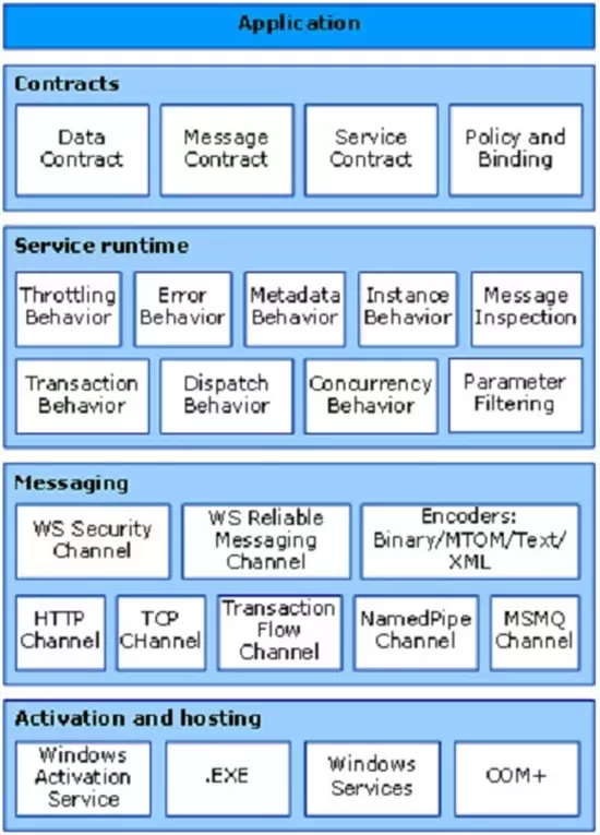 Các lớp chủ yếu trong kiến trúc của Windows Communication Foundation (WCF) (Nguồn: Internet)