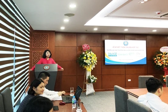Phát biểu tại lễ ký kết, PGS, TS. Nguyễn Thị Bích Loan – Phó Hiệu trưởng Nhà trường khẳng định: “Việc hợp tác giữa Nhà trường và các Công ty là một bước tiến quan trọng giúp các bên có cơ hội mở rộng mối quan hệ hợp tác trong công tác đào tạo, tạo môi trường gắn kết giữa đào tạo và thực tiễn nhằm mang lại lợi ích cho các bên, đồng thời cũng tạo điều kiện cho sinh viên tiếp cận các thông tin hữu ích về cơ hội thực tập, việc làm, các kênh tư vấn chuyên sâu, trau dồi và phát triển kĩ năng nghề nghiệp”. Thay mặt lãnh đạo Nhà trường, PGS, TS. Nguyễn Thị Bích Loan đã gửi lời cảm ơn sâu sắc tới công ty đối tác và giao nhiệm vụ cho Khoa HTTT Kinh tế và TMĐT trong việc triển khai có hiệu quả các chương trình hợp tác sắp tới.