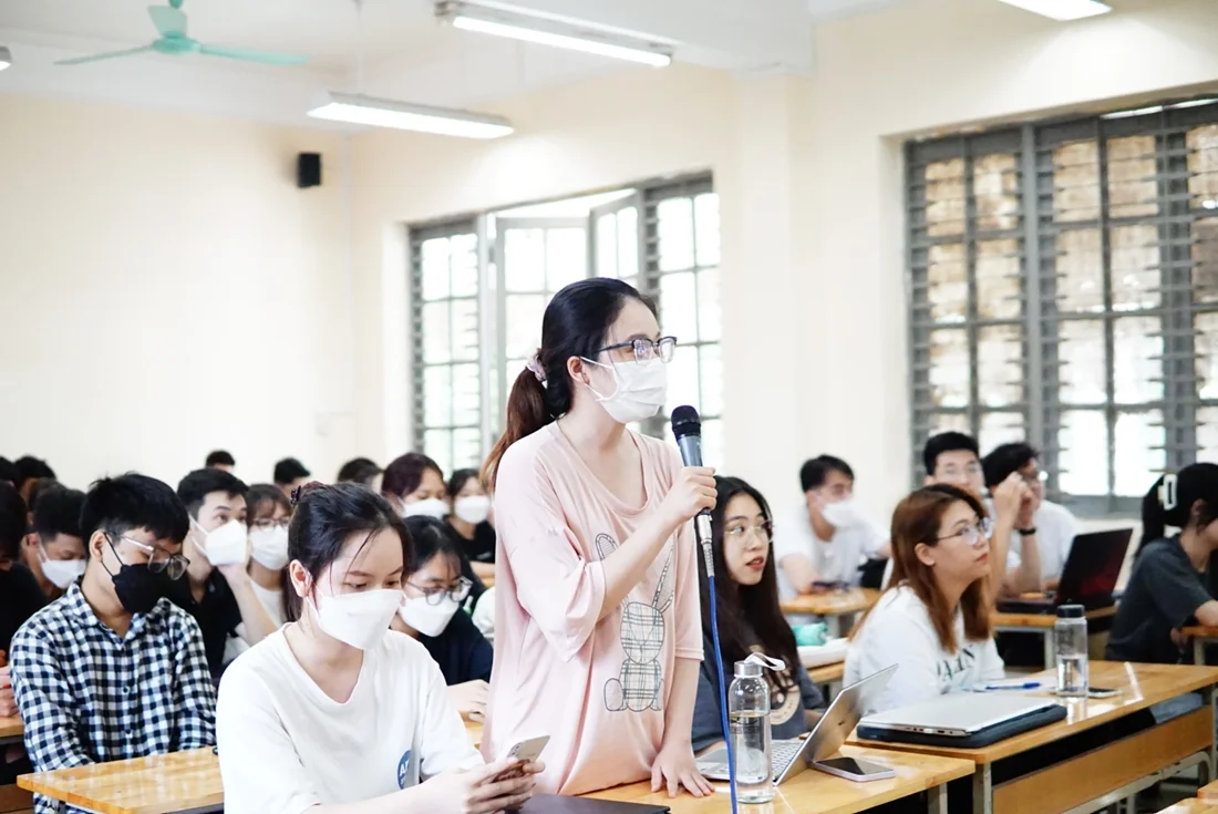 Ảnh: Sinh viên hào hứng đưa ra các câu hỏi thắc mắc về lĩnh vực ERP trên thị trường hiện nay