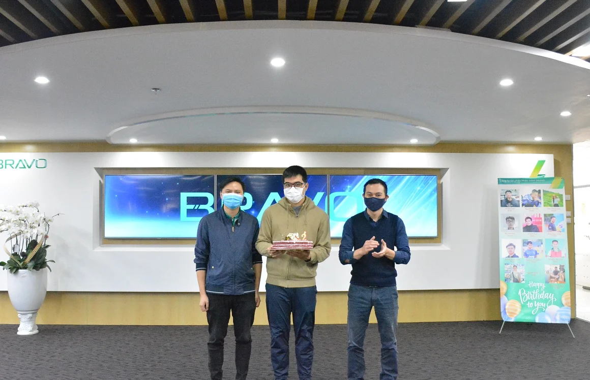 Ngày 26/02 vừa qua tại BRAVO Hà Nội, một chương trình nhỏ cùng tiệc ngọt chúc mừng sinh nhật CBNV tháng 2 đã được tổ chức vui vẻ, ấm áp tại văn phòng. Các thành viên có ngày sinh trong tháng 2 đã được nhận những lời chúc mừng từ đồng nghiệp, cùng nhau cắt bánh, thổi nến… tại sảnh văn phòng.