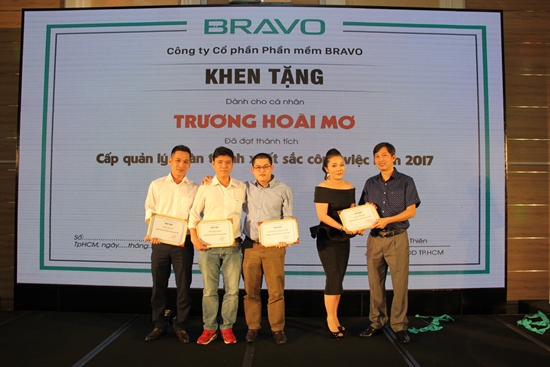Chương trình được tiếp nối bằng các hoạt động vinh danh 35 CBNV có thành tích xuất sắc trong công tác SXKD của năm qua các danh hiệu: Nhân viên tiêu biểu; Lao động tiên tiến; Chiến sỹ thi đua; Lao động giỏi; Cán bộ quản lý giỏi. Đồng thời, trao tặng danh hiệu Tập thể lao động xuất sắc cùng phần thưởng cho Phòng Kinh doanh và Ban Kỹ thuật triển khai vì hoàn thành vượt mức kế hoạch năm và nỗ lực cho sự phát triển chung của BRAVO.