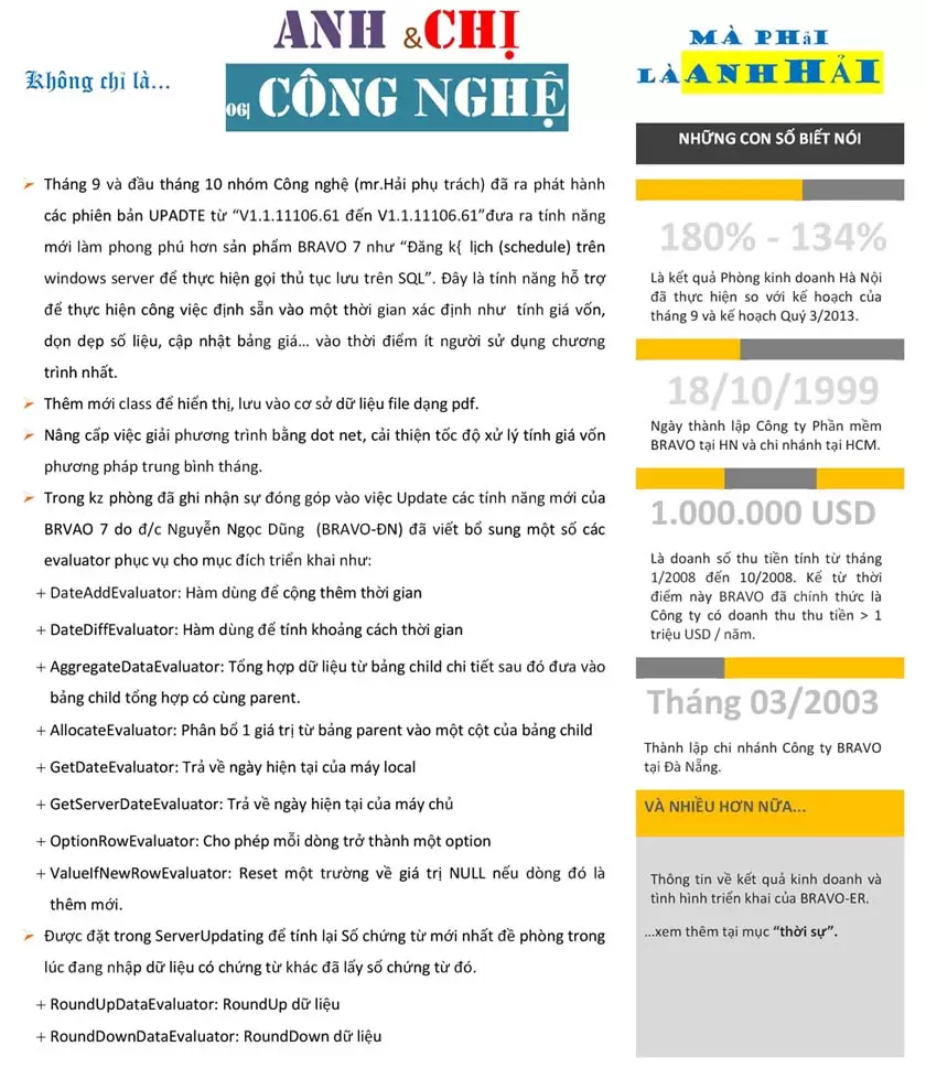 Tháng 9 này, BRAVO - HCM đã gặt hái được nhiều thành công. Trong đó nổi bật nhất là việc đã nghiệm thu được các hợp đồng lớn như: