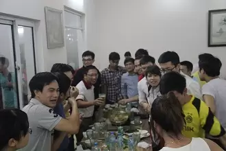 Tưởng say cả chấy hết lượt, vậy mà ngay hôm sau, toàn quân lại kéo nhau đập phá một trận tưng bừng nhiệt liệt chào mừng ngày giải phóng miền Nam 30/04 và quốc tế lao động 01/05. Phía trước là một kỳ nghỉ lễ kéo dài khiến các con chiên bia rượu mặc sức tung hoành, quậy nát quán. Rõ ràng là hai dãy bàn hiền lành ngồi thưởng thức đồ ăn điềm đạm đầy phong thái của các ẩm thực gia thì xa xa đâu đấy tiếng hò reo cổ vũ náo nhiệt lôi kéo sự chú ý của anh em. Những màn đấu bia giao đôi gay cấn không kém gì trận cầu đinh tối qua. Ngoài những mặt hại mà người ta vẫn tuyên truyền la liệt trên các phương tiện truyền thông của rịu bia thì chí ra nó cũng có những mặt tích cực trong việc giao lưu, giao hữu giữa các đồng nghiệp. Từ sếp già, sếp trẻ, nhân viên cũ nhân viên mới tới sinh viên thực tập, trên sân bia thì kẻ thắng là vua. Giữa tiếng cổ vũ nhiệt tình của các thành phần chọc gậy bánh xe, mô kích anh em, lần lượt các sếp bị hạ đo ván trước nội lực phi thường của đội ngũ nhân viên mà chỉ trên bàn bia mới thể hiện sức mạnh của mình một cách triệt để. Còn khá sung sức hay ăn chưa đủ no mà tổ đội tiếp tục nạp năng lượng tại quán Karaoke, màn tập đọc này có vẻ biến thành một thông lệ sau mỗi bữa tiệc từ bao giờ không biết nữa. Sau một hồi quậy tanh bành từ sân khấu lên mặt bàn thì mic cũng theo đó mà đi luôn. Báo hại đền bù gấp đôi chi phí hát hò =;=. Thôi, anh em lần sau nên tiết chế lại cái sự sung sướng của mình, sợ phết.
