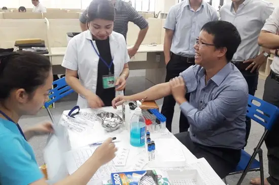CBNV đang được lấy mẫu máu trong buổi khám đầu tiên 02/12