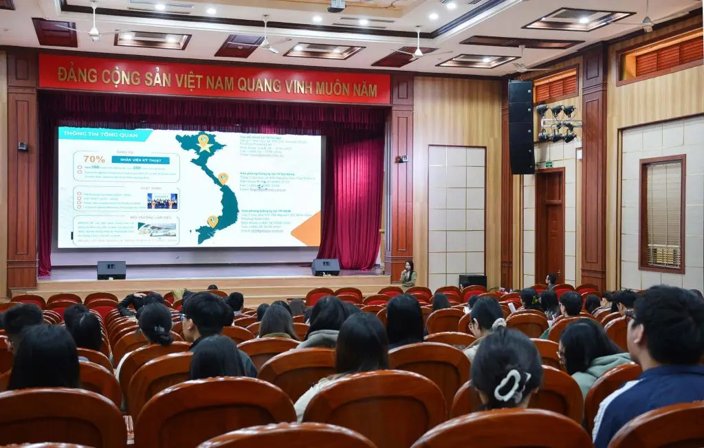 Trong không khí cởi mở và sôi nổi, nhiều sinh viên đã chủ động đặt câu hỏi, trao đổi trực tiếp với đại diện doanh nghiệp về yêu cầu tuyển dụng, kỹ năng cần thiết cũng như cơ hội phát triển sau giai đoạn thực tập.