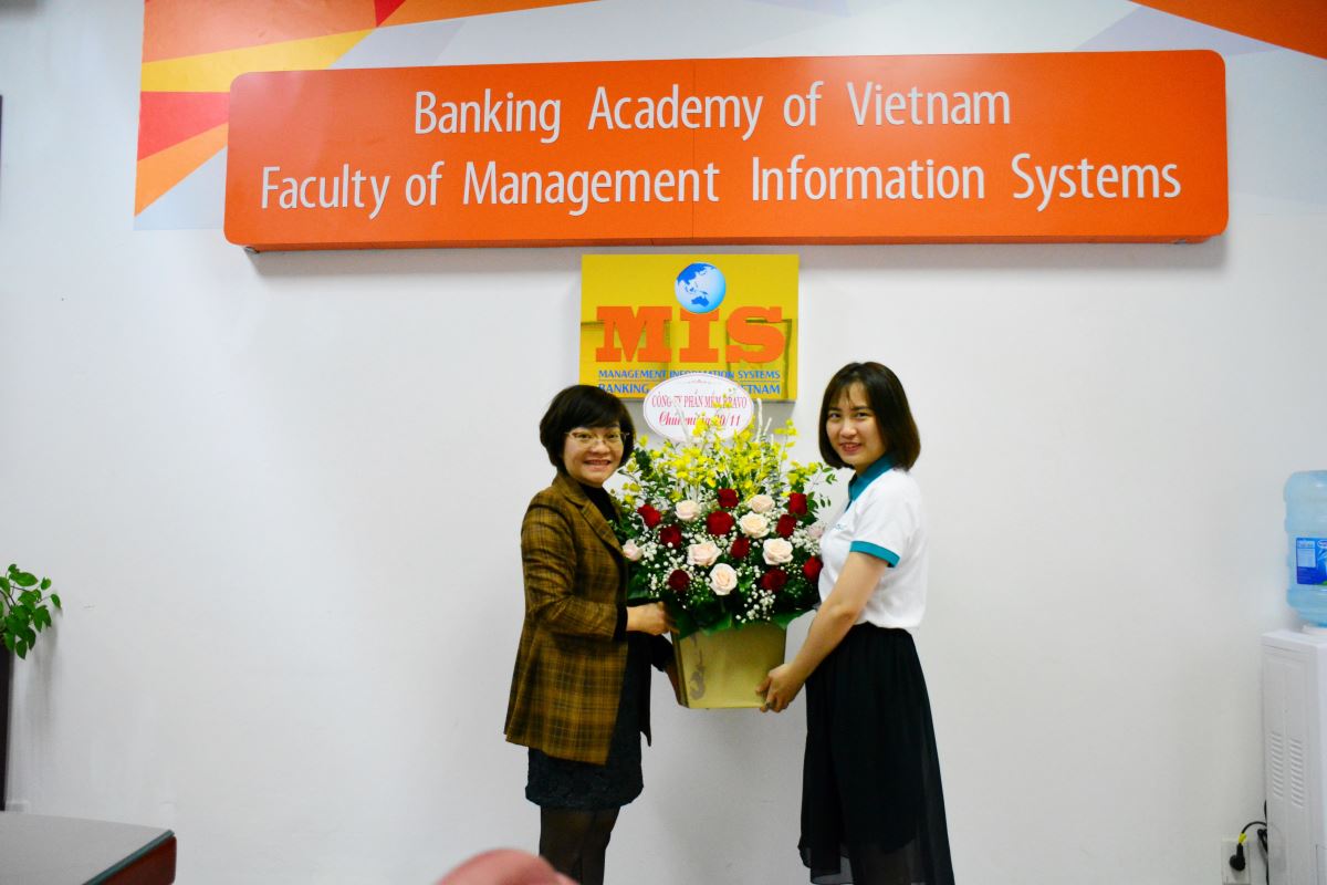Tặng hoa, chúc mừng thầy cô tại Khoa HTTTKT – Học viện Tài Chính