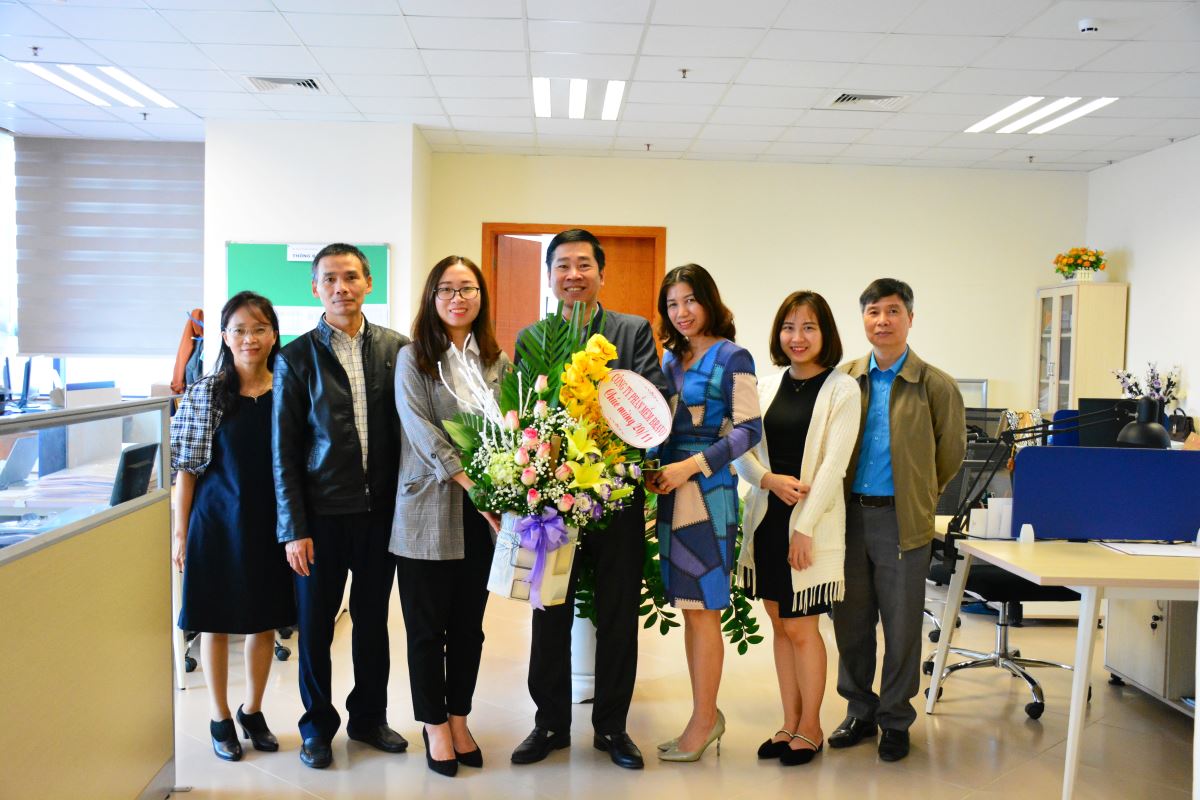 Tặng hoa và chúc mừng thầy cô Viện Công nghệ Thông tin và Kinh tế số, ĐH Kinh tế Quốc dân