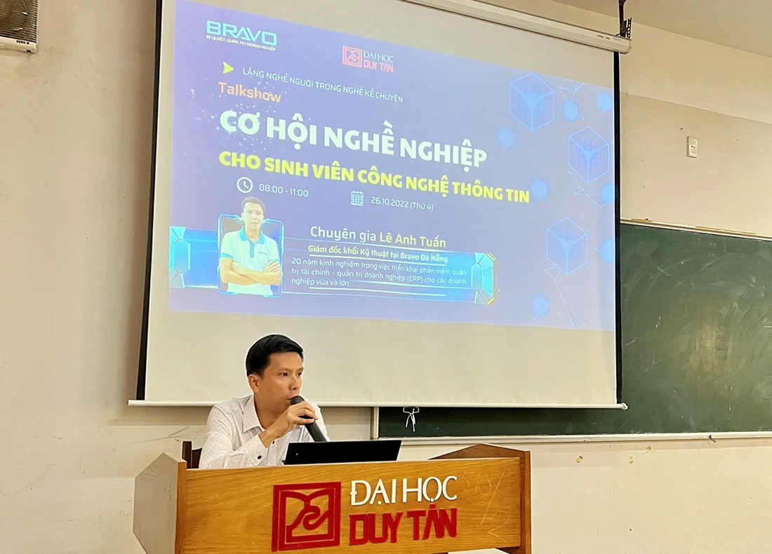 Ngày 26/10, Talkshow “Cơ hội nghề nghiệp cho sinh viên ngành CNTT” do Công ty Cổ phần Phần mềm BRAVO kết hợp cùng Khoa Công nghệ Thông tin (CNTT), Đại học Duy Tân tổ chức, nhằm chia sẻ các kiến thức hữu ích liên quan đến chuyên ngành học, vị trí việc làm, cơ hội nghề nghiệp và giao lưu, tư vấn cho các sinh viên. Qua đó giúp các bạn có thêm thông tin cũng như định hướng học tập để mở rộng cơ hội việc làm sau khi rời ghế nhà trường.