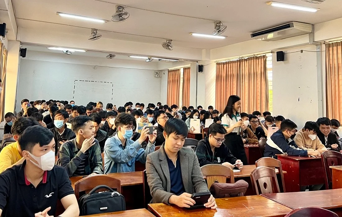 Sinh viên sôi nổi tham gia trả lời câu hỏi, giao lưu cùng diễn giả