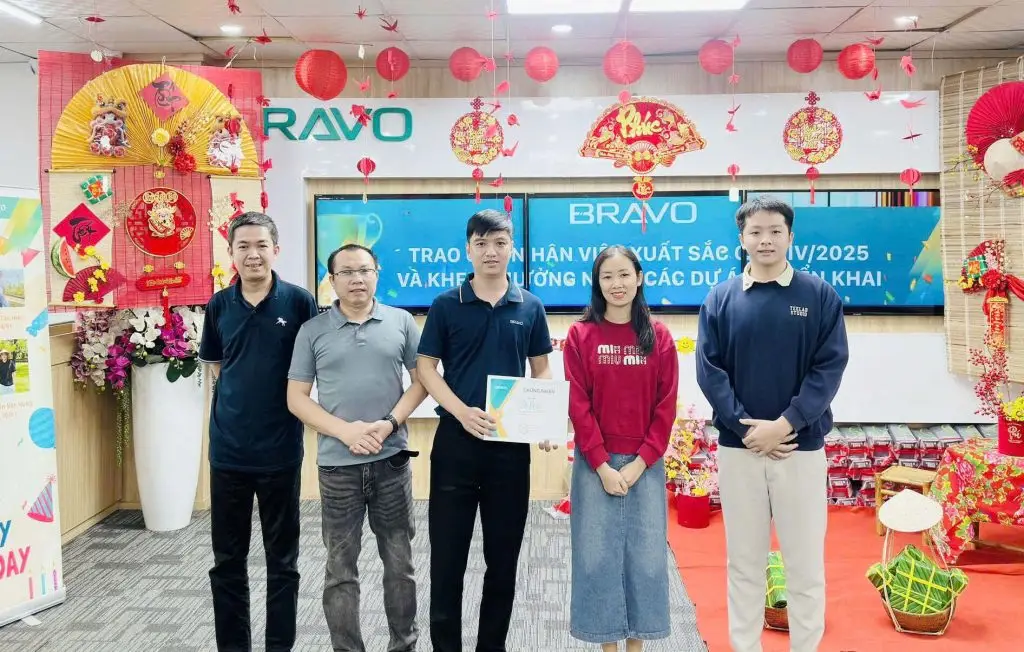 Sáng ngày 24/01/2026, tại văn phòng BRAVO Đà Nẵng đã tổ chức buổi tổng kết, vinh danh và trao Cúp Nhân viên Xuất sắc Quý IV/2025, đồng thời trao các khen thưởng “nóng” từ Ban Lãnh đạo dành cho những cá nhân và tập thể có thành tích nổi bật trong quý vừa qua. Tại buổi lễ, đại diện Ban Lãnh đạo công ty, ông Nguyễn Đức Sơn – Giám đốc BRAVO ĐN đã trực tiếp trao các khen thưởng và gửi lời chúc mừng tới các CBNV.