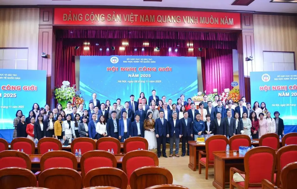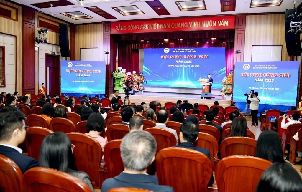 Ngày 8/11/2025, Đại học Kinh tế Quốc dân tổ chức Hội nghị Công giới năm 2025 và diễn đàn trao đổi với chủ đề "Triển khai tích hợp nội dung về phân tích dữ liệu và trí tuệ nhân tạo, tinh thần doanh nhân và khởi nghiệp vào chương trình đào tạo, góp phần nâng cao chất lượng đào tạo tại Đại học Kinh tế Quốc dân".