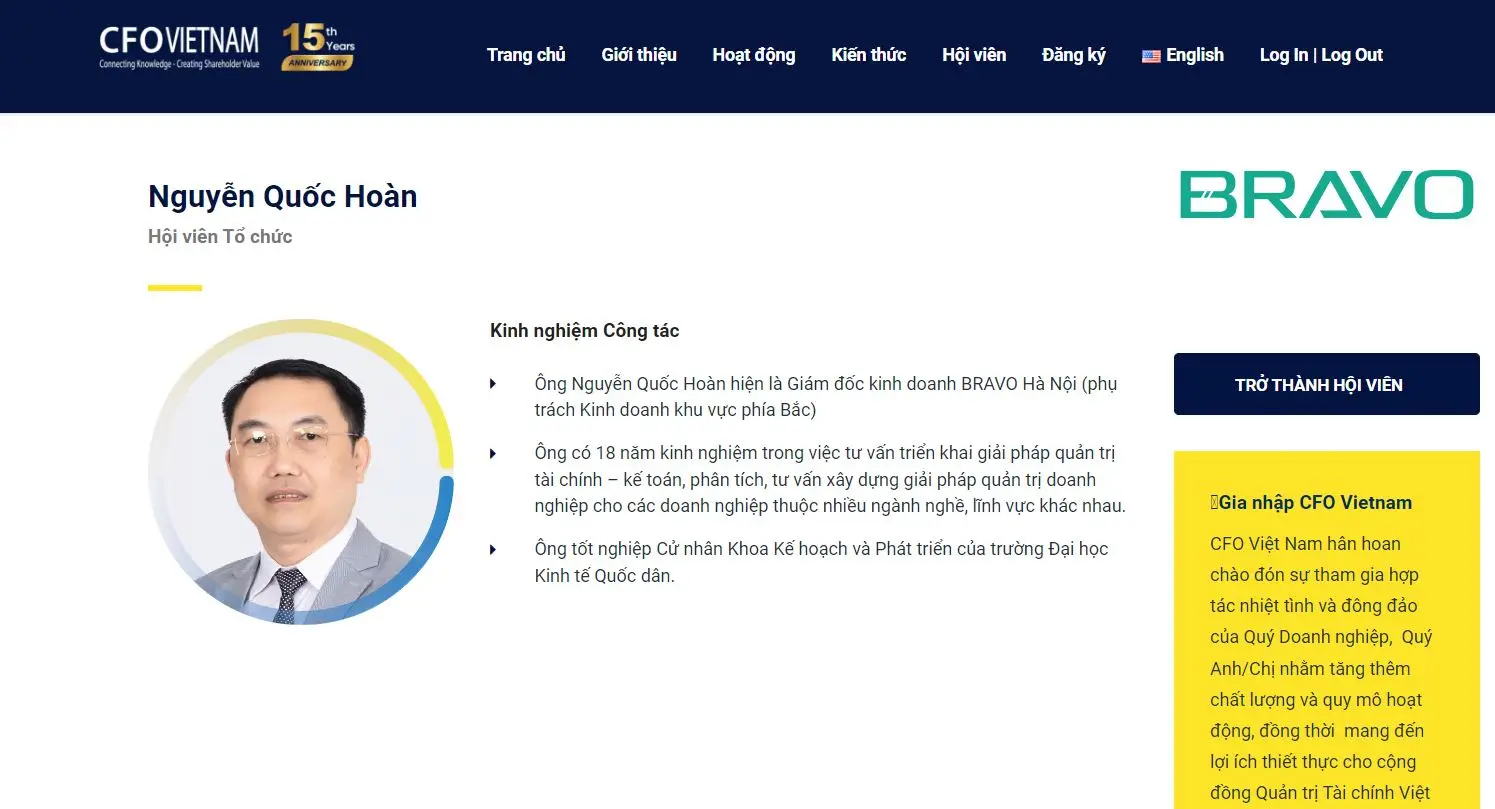 Tháng 3/2024, Công ty Cổ phần Phần mềm BRAVO chính thức trở thành hội viên của Câu lạc bộ Giám đốc Tài chính (CFO) Việt Nam với hai đại diện là ông Nguyễn Quốc Hoàn – GĐ Kinh doanh BRAVO HN và bà Trương Hoài Mơ – Giám đốc Kinh doanh BRAVO HCM.