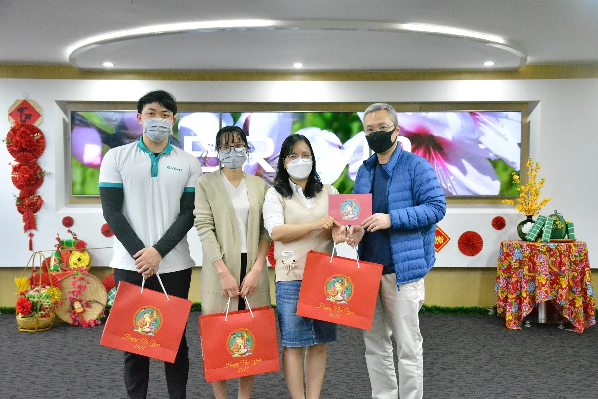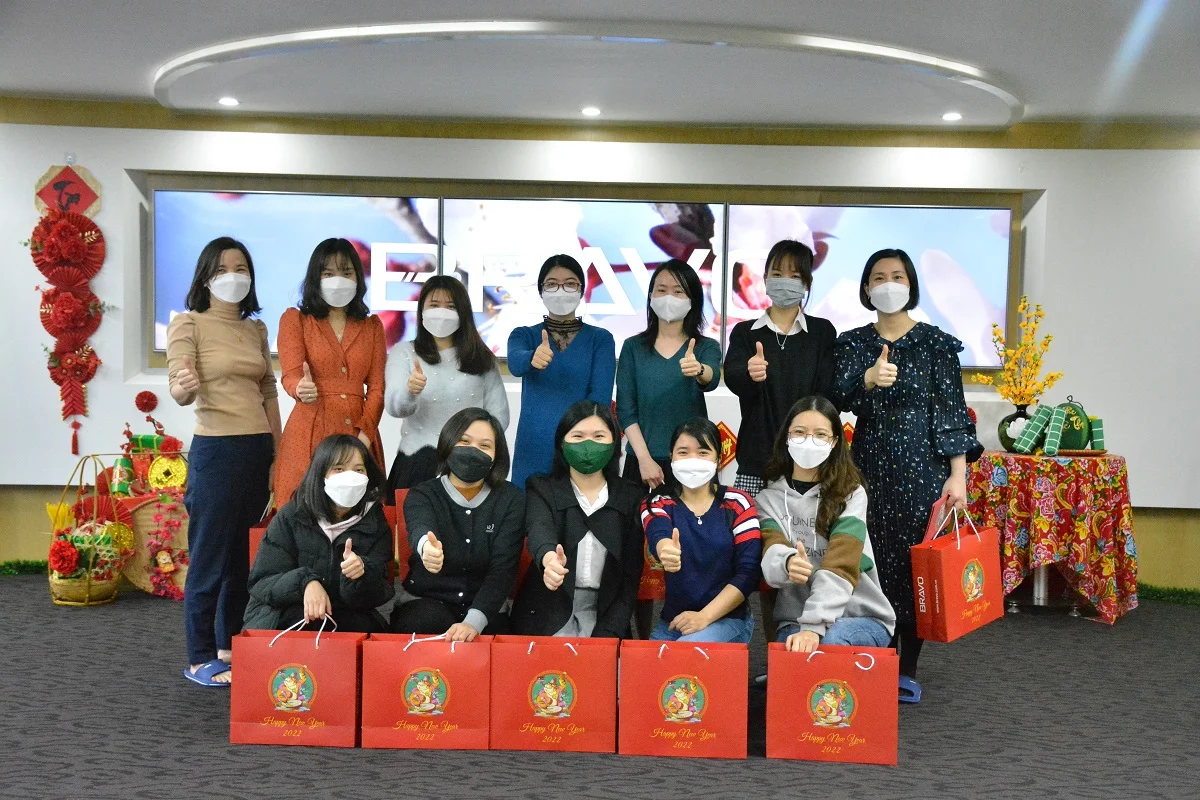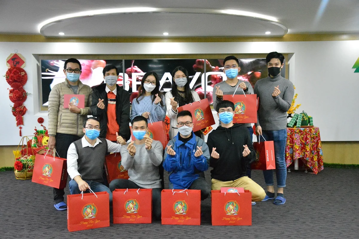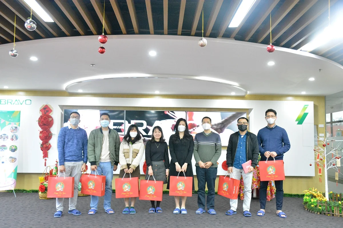Mỗi độ Tết đến xuân về, những món quà Tết được công ty gửi tới tận tay CBNV như lời cảm ơn cho những cống hiến trong năm vừa qua và chúc mừng cho năm mới. Những ngày cận Tết, quà sẽ được chuyển về văn phòng Hà Nội, và đại diện Ban lãnh đạo công ty sẽ trao tận tay từng suất quà cho đại diện các phòng ban cũng như cho mỗi CBNV. Năm nay dù tình hình dịch bệnh kéo dài trong suốt năm, cũng không thể làm thay đổi văn hóa này của BRAVO.