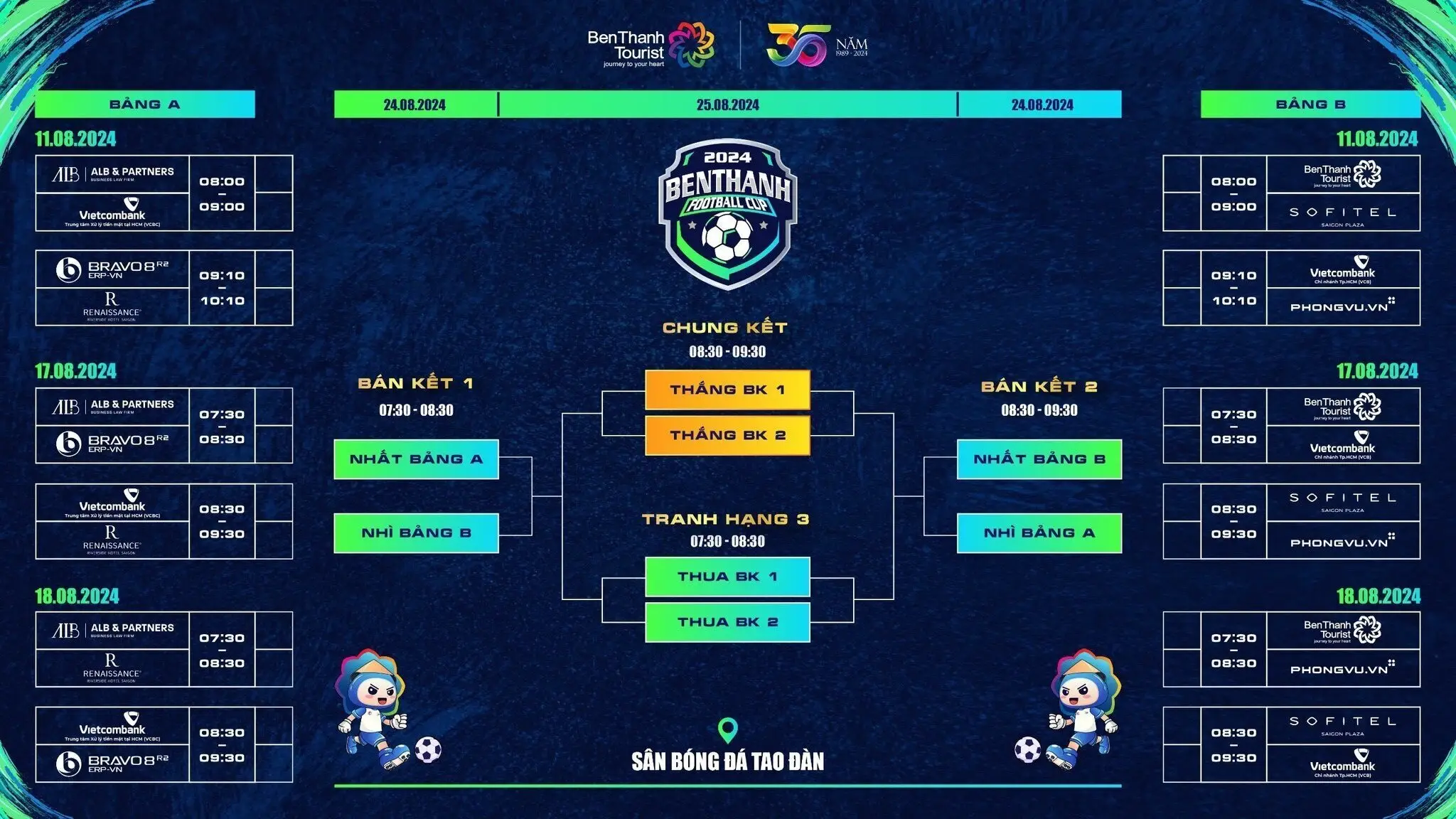 Trước đó, ngày 28/07/2024 tại văn phòng BenThanh Tourist, BTC giải đấu đã tổ chức lễ bốc thăm chia bảng giải bóng đá với sự tham dự của các đội trưởng của 8 đội bóng. Theo kết quả bốc thăm, đội tuyển BRAVO sẽ nằm cùng bảng A với các đội tuyển: ALB & Partners, Renaissance và Vietcombank VCBC.
