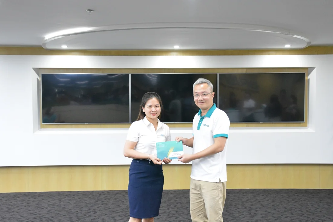 Ông Ngô Đình Hải – GĐ Khối Công nghệ đã lên gửi lời cảm ơn đến các ý kiến tâm huyết của CBNV gửi về hòm thư đóng góp ý kiến cho phát triển sản phẩm và thay mặt công ty trao giải thưởng khích lệ tinh thần làm việc hăng say của CBNV.