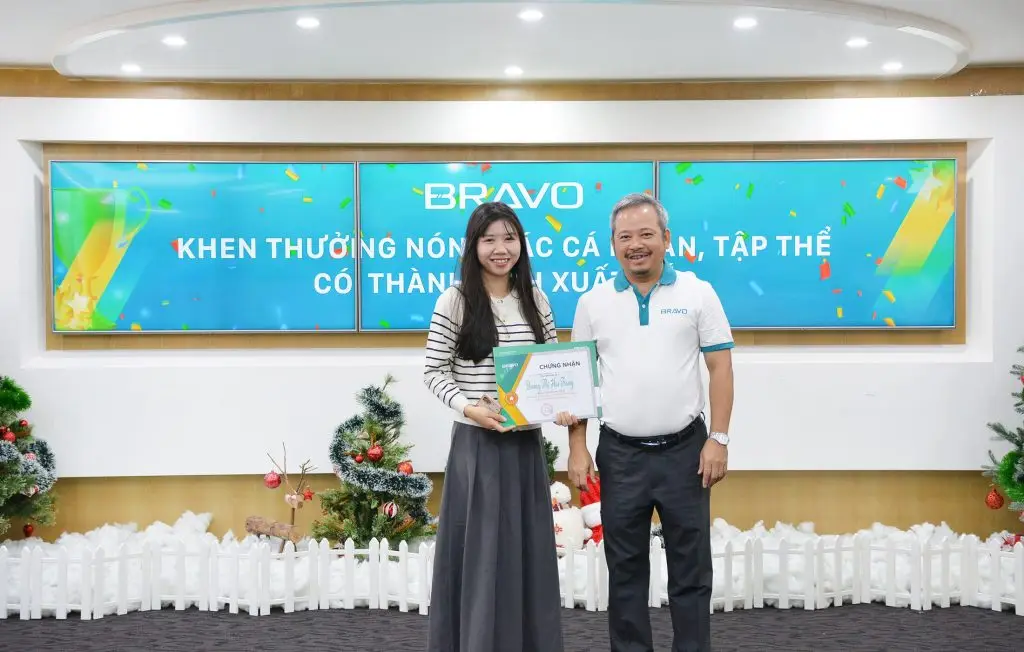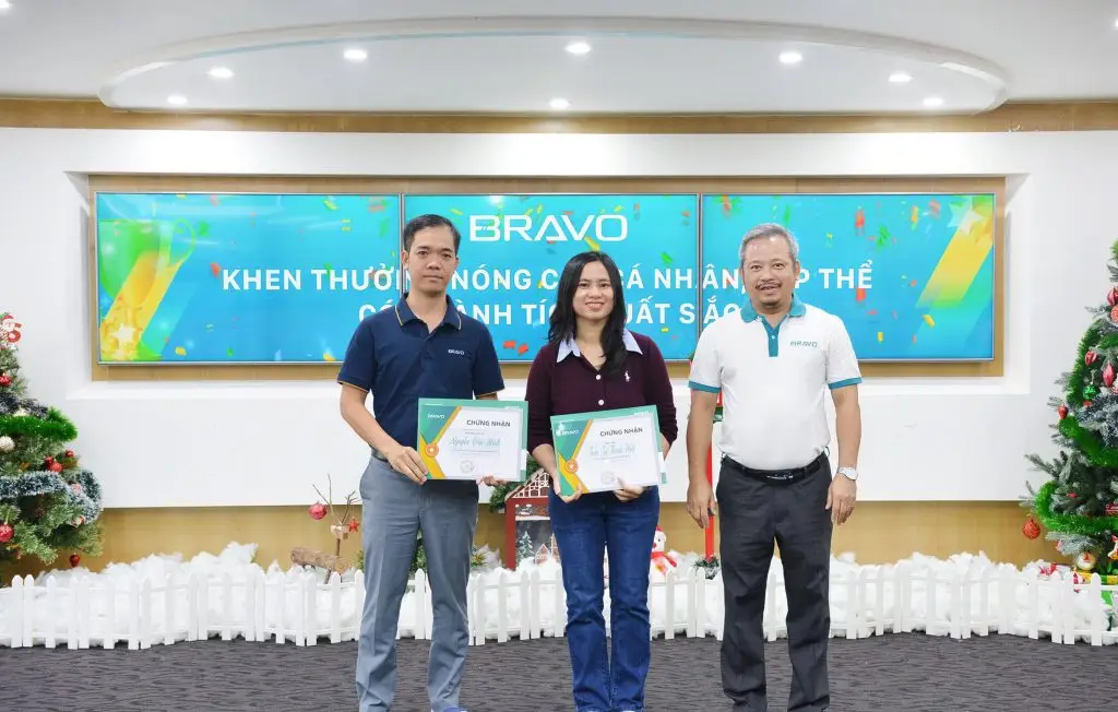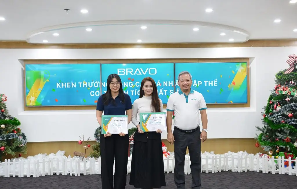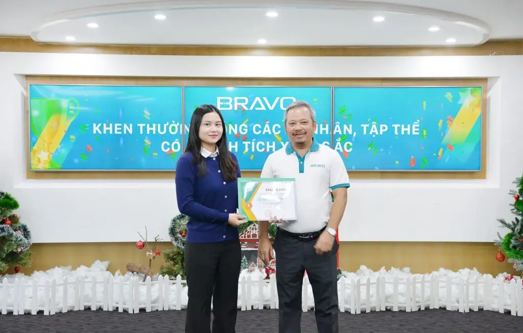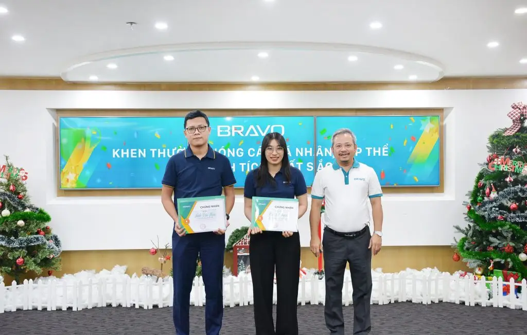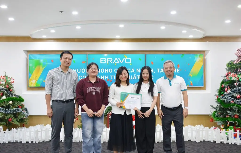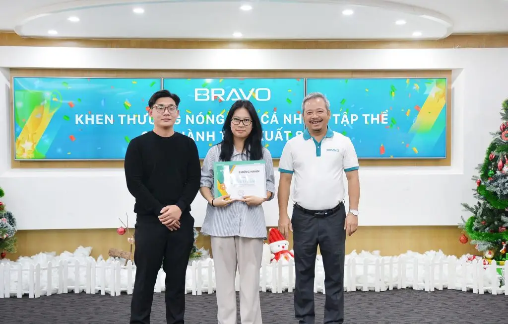 Sáng ngày 08/12/2025, tại BRAVO Hà Nội, không khí làm việc càng rộn ràng hơn khi các thành viên đón nhận quyết định khen thưởng "nóng" từ Ban lãnh đạo công ty. Các khen thưởng chính là sự ghi nhận kịp thời những thành tích nổi bật của CBNV, đồng thời tiếp thêm ngọn lửa nhiệt huyết để mỗi cá nhân tiếp tục hăng say làm việc.