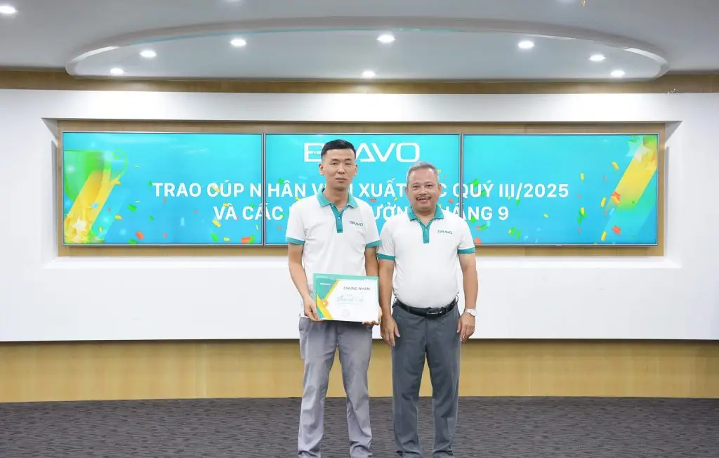 Cũng trong chương trình, giải thưởng “Khuyến khích đóng góp ý kiến cho sản xuất sản phẩm” tháng 09/2025 đã được trao tặng, nhằm ghi nhận tinh thần sáng tạo và những nỗ lực không ngừng của các thành viên trong việc hoàn thiện, cải tiến và phát triển sản phẩm BRAVO.
