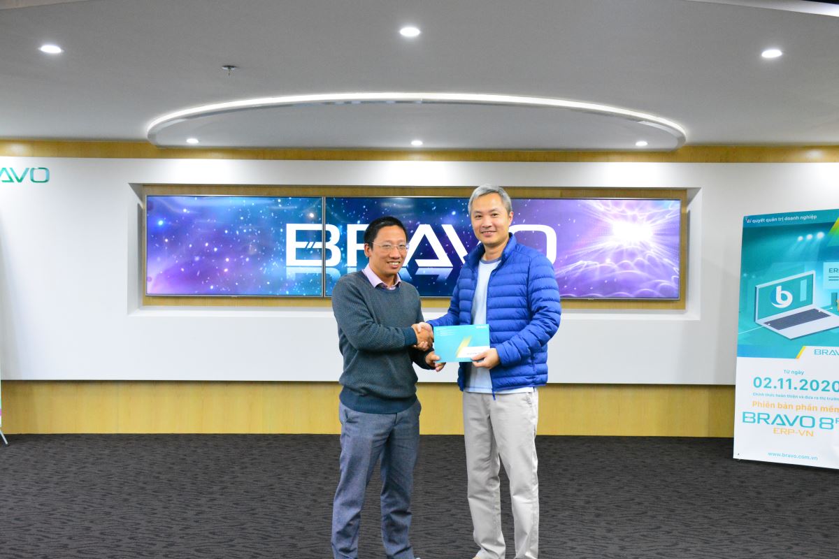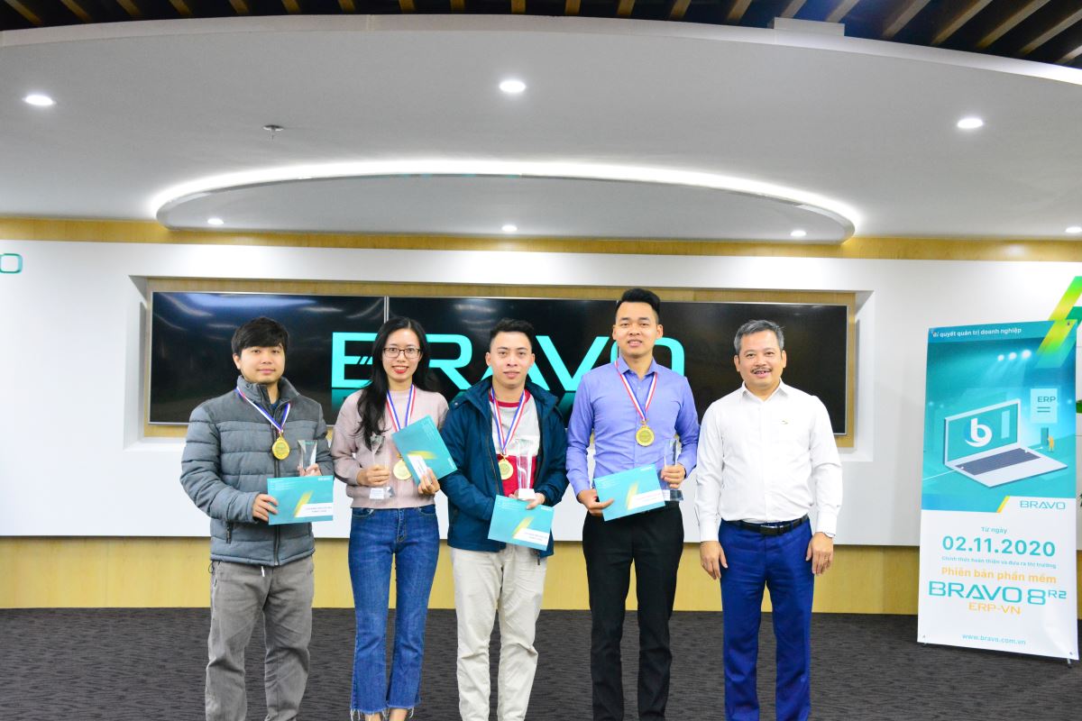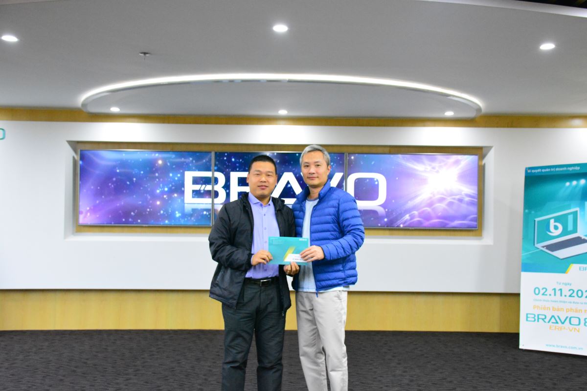 Tiếp theo là việc trao giải thưởng “Giải Khuyến khích đóng góp ý kiến cho PTSP” tháng 11. Đây là giải thưởng định kỳ hàng tháng tại BRAVO, được phát động và duy trì thực hiện nhằm hoàn thiện hệ thống sản phẩm và dịch vụ phần mềm ERP BRAVO, đồng thời tạo không khí làm việc sáng tạo, vui vẻ cho tất cả CBNV. Tháng này, cả 02 giải Ý nghĩa và giải May mắn đã thuộc về các CBNV BRAVO HN.