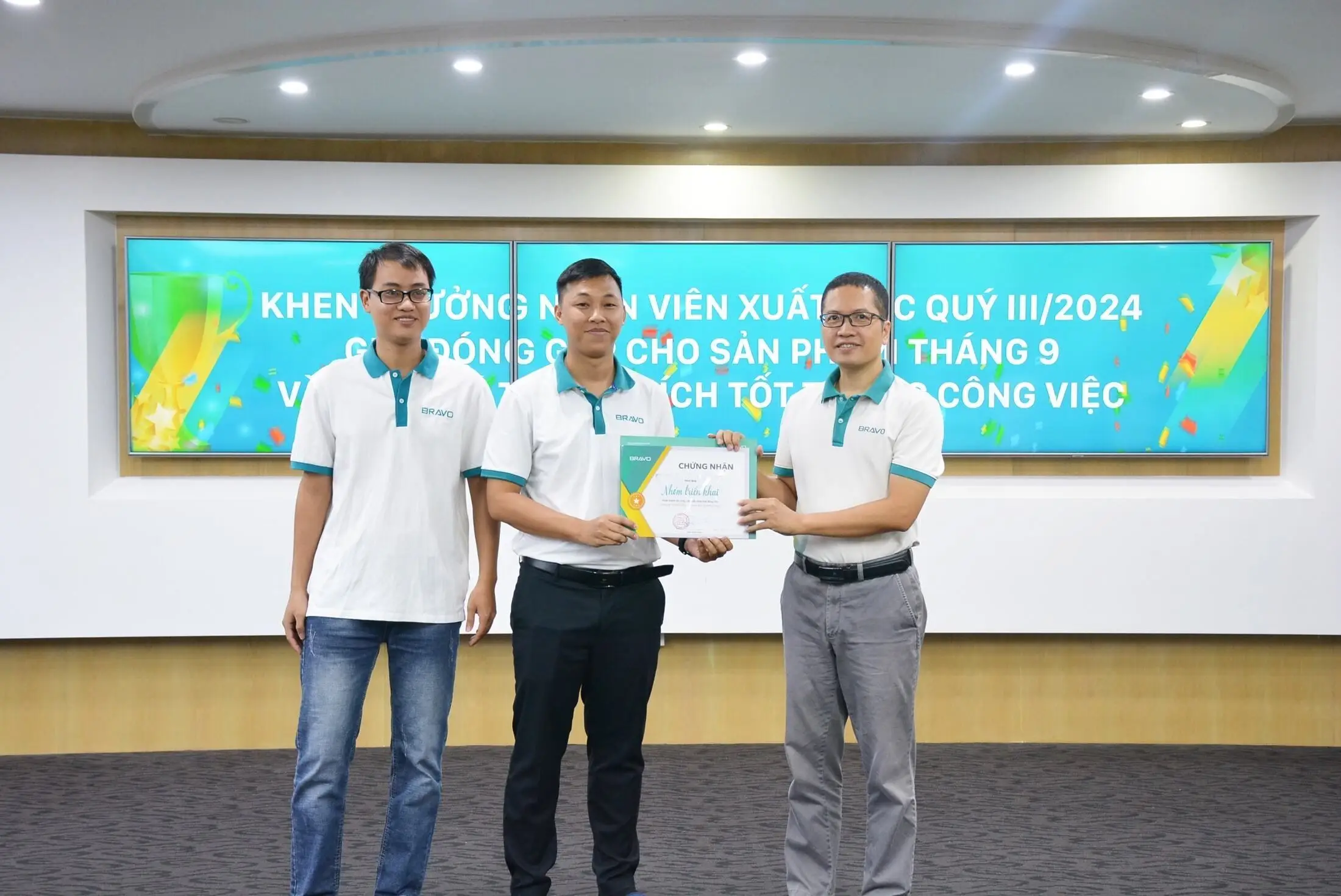 Như thường lệ, sau khi tổng kết hoạt động SXKD trong tháng vừa qua, đại diện ban lãnh đạo BRAVO-HN đã lên trao cúp, kỷ niệm chương và phần thưởng tới các cá nhân đạt thành tích tiêu biểu trong Quý III/2024: