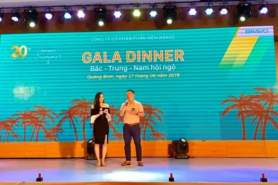 Tối đó, chương trình Gala Dinner mang tên “BRAVO, 20 năm hành trình” đã được long trọng tổ chức tại nhà hàng của khách sạn. Đây chính là thời khắc thành viên BRAVO ba miền hội tụ đông đủ nhất, mọi người được dịp giao lưu không chỉ với đồng nghiệp cùng phòng ban, liên phòng ban, giữa các miền, đồng thời là cơ hội để gặp gỡ gia đình, người thân của CBNV đi cùng trong chuyến du lịch.
