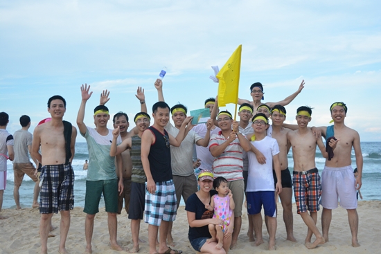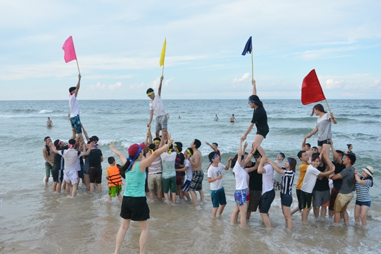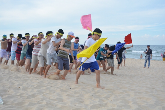 Buổi chiều, các thành viên quay lại với bãi biển Nhật Lệ để tham gia Team Building – một phần rất quen thuộc không thể thiếu trong những chuyến du lịch của BRAVO. Với 4 đội chơi quen thuộc: Kỹ thuật, Bảo hành, Kinh doanh, Tổng hợp, trong những màu cờ hồng, vàng, đỏ, xanh, các đội bắt đầu những phần thi với khí thế “hừng hực” quyết tâm giành về cho đội mình giải thưởng lớn. Những phần thi không quá phức tạp nhưng lại đòi hỏi sự nhanh nhẹn, khéo léo, phối hợp ăn ý của các thành viên. Đặc biệt, phần thi Nhảy theo đội trưởng đã mang đến cho khán giả những tràng cười xả láng với những điệu nhảy vô cùng sáng tạo chỉ có tại BRAVO.