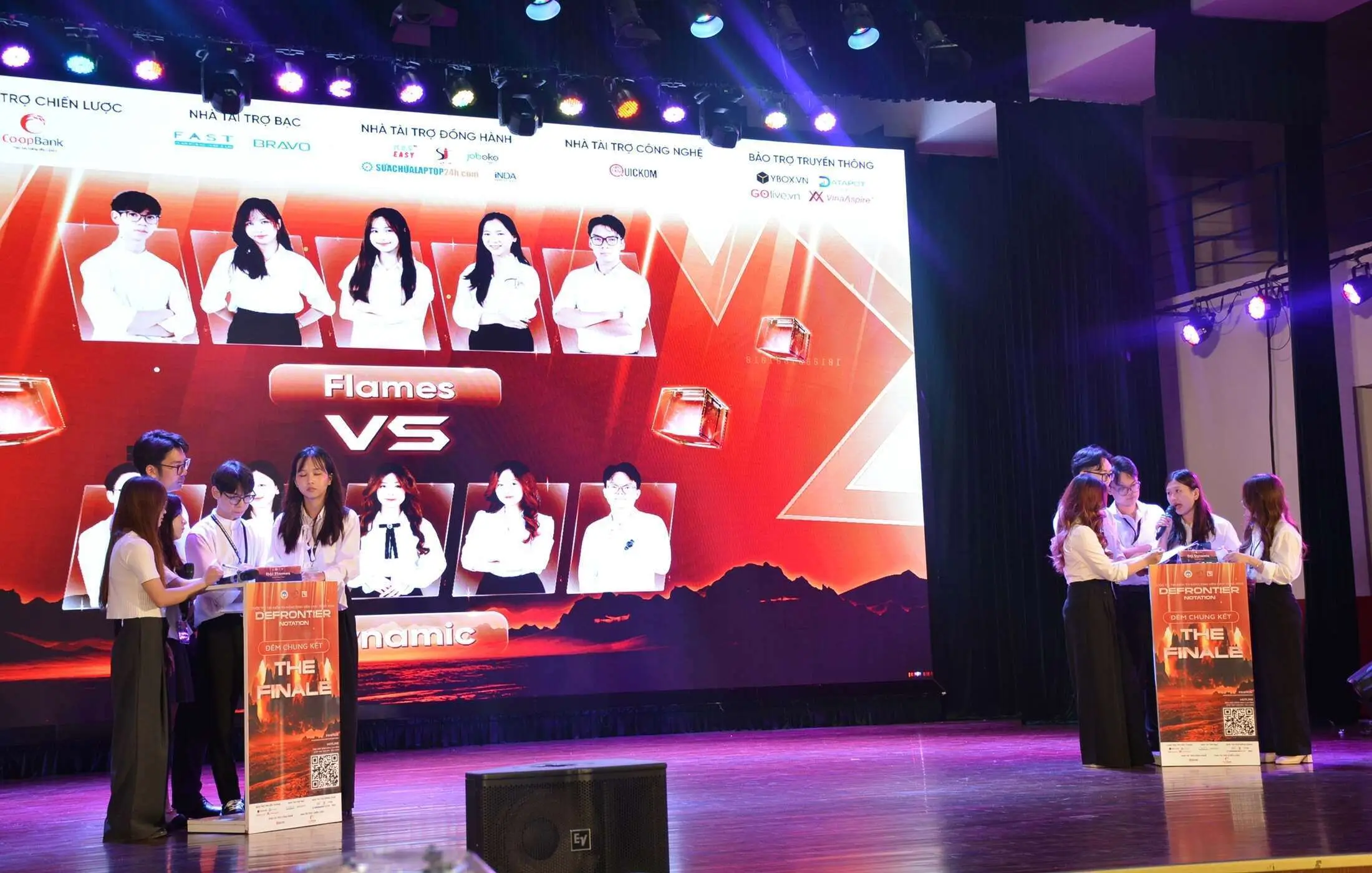 Đêm Chung kết Cuộc thi Tìm kiếm Tài năng Sinh viên Kinh tế số deFrontier 2024 đã diễn ra thành công rực rỡ, để lại nhiều dấu ấn đặc biệt và các cảm xúc thăng hoa trong lòng các bạn trẻ đam mê IT BA. Nhờ sự chuẩn bị kỹ lưỡng về nội dung, cùng việc đầu tư cho hoạt động nghiên cứu, bốn đội thi bao gồm: đội Flames, ️đội Dynamic, đội MIS5T và đội Saturday đều đã thể hiện rất xuất sắc bài dự thi của mình qua các phần thi: thuyết trình và tranh luận.