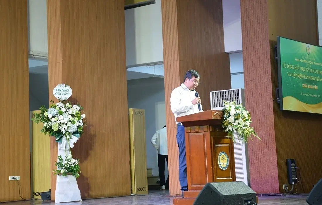 Sau phần nghi lễ chào cờ và văn nghệ chào mừng, Ths. Phan Phước Long – Phó Trưởng Khoa HTTTKT đã thực hiện báo cáo tổng kết, đánh giá công tác đào tạo, kết quả học tập và NCKH của sinh viên Khoa trong năm học 2023– 2024, đồng thời đề ra mục tiêu, phương hướng nhiệm vụ trong năm học mới 2024 – 2025. Năm học vừa qua ghi nhận những thành tích cao của thầy và trò của Khoa HTTTKT.