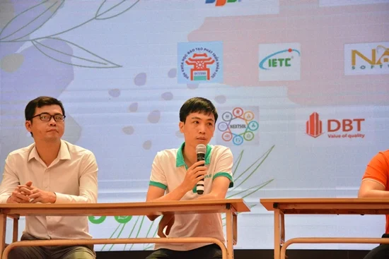 Ảnh: Anh Đoàn Văn Quyền giao lưu và chia sẻ cùng sinh viên Khoa CNTT, ĐH Tài nguyên Môi trường.