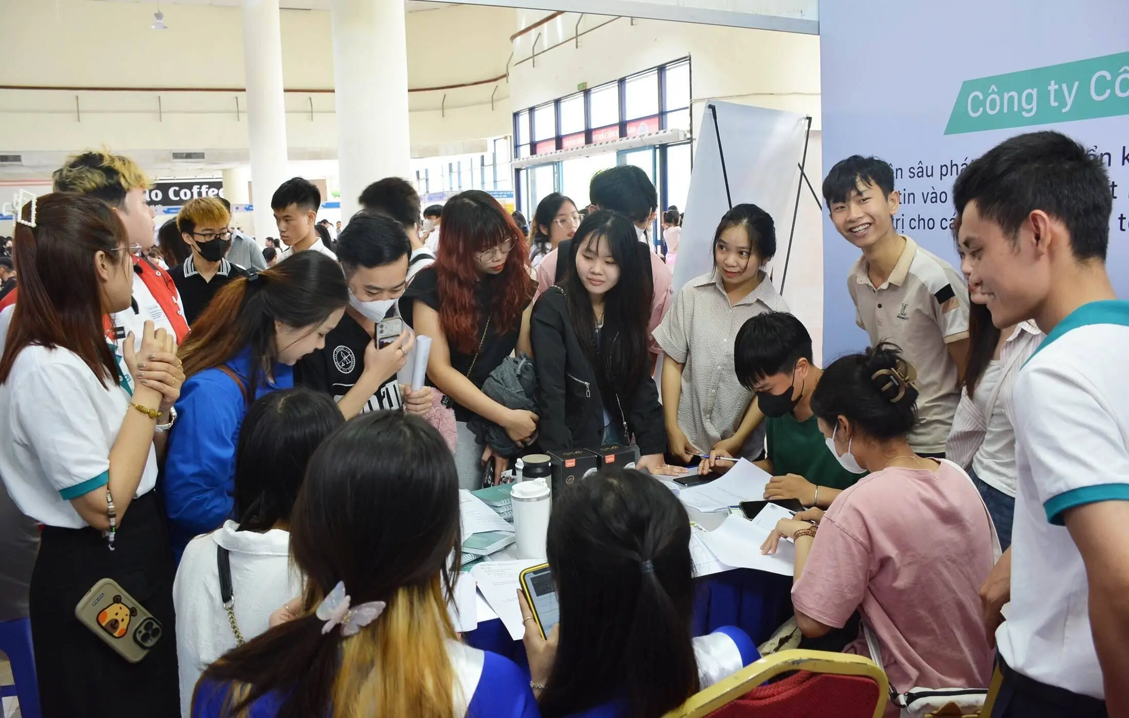 Đặc biệt, rất nhiều sinh viên bày tỏ mong muốn tham gia ứng tuyển vào các vị trí (nhân viên, thực tập sinh) đã nộp CV và thực hiện bài test đầu vào ngay tại gian hàng.