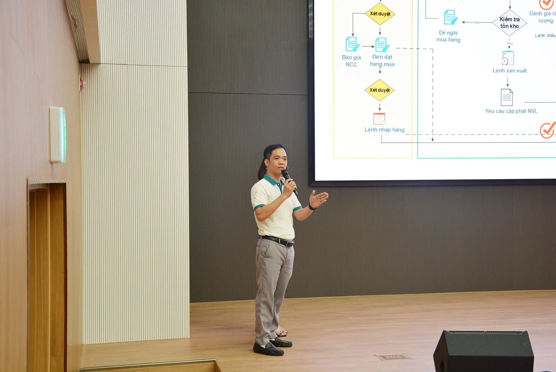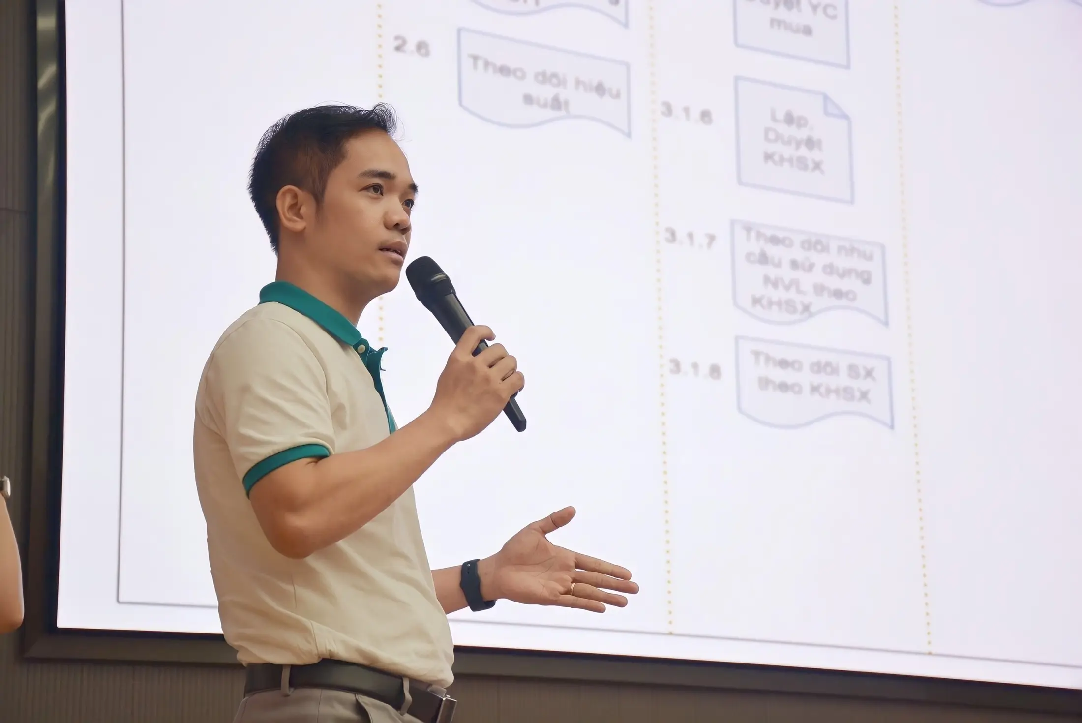 Ảnh: Đại diện BRAVO chia sẻ về quy trình quản lý sản xuất của giải pháp BRAVO ERP tại doanh nghiệp sản xuất