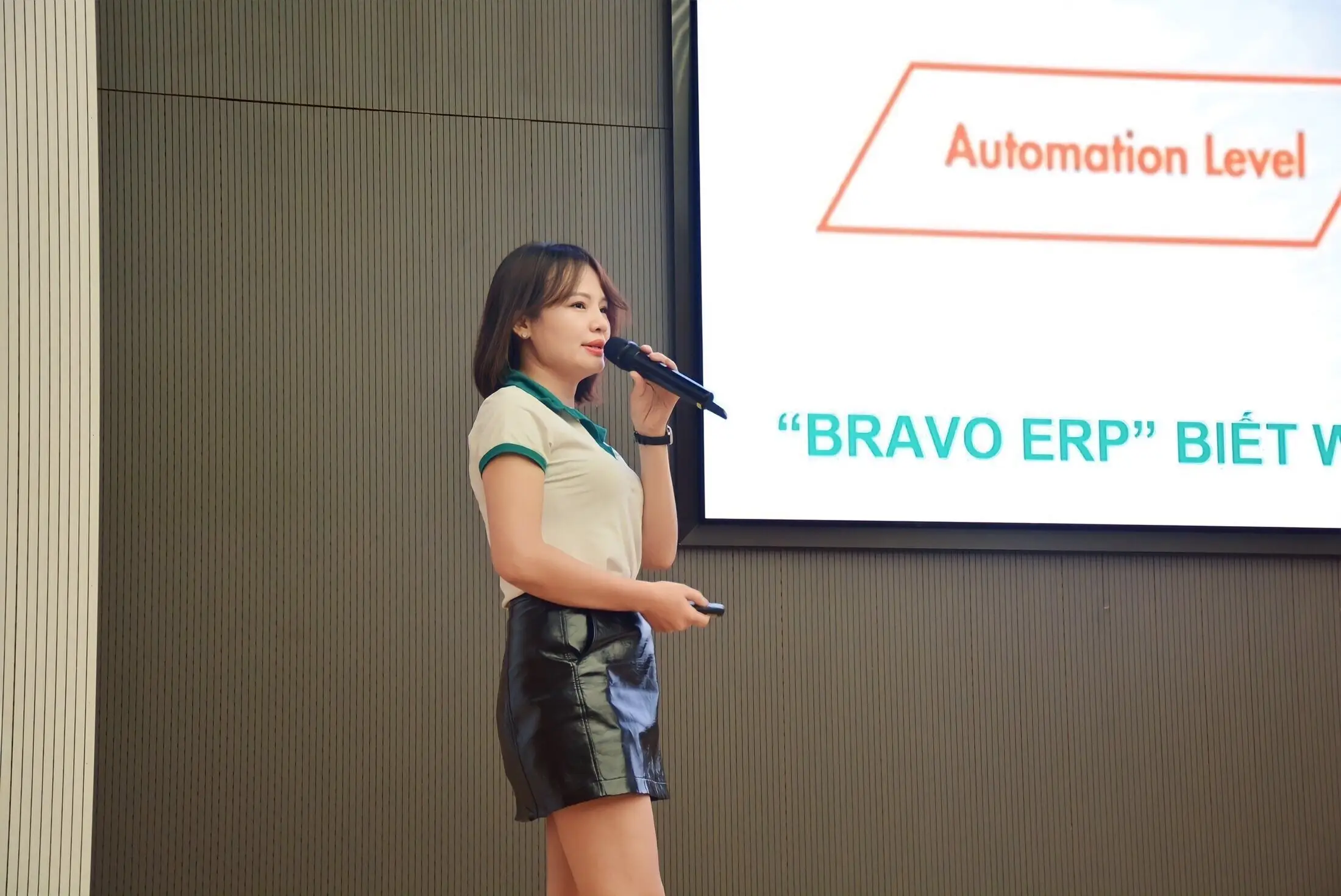 Tại chương trình, bà Phạm Thị Thủy – Trưởng nhóm Kinh doanh BRAVO HN và ông Nguyễn Văn Minh – Trưởng phòng Giải pháp và Tư vấn đã trình bày tổng quan về giải pháp Quản trị tổng thể doanh nghiệp BRAVO ERP ứng dụng tại doanh nghiệp sản xuất; Quy trình luân chuyển dữ liệu; Quy trình quản lý sản xuất kết nối tầng MES, kết nối máy móc thiết bị; Tích hợp quản trị kho thông minh trên ERP; Kết nối với các ứng dụng và thiết bị ngoại vi…