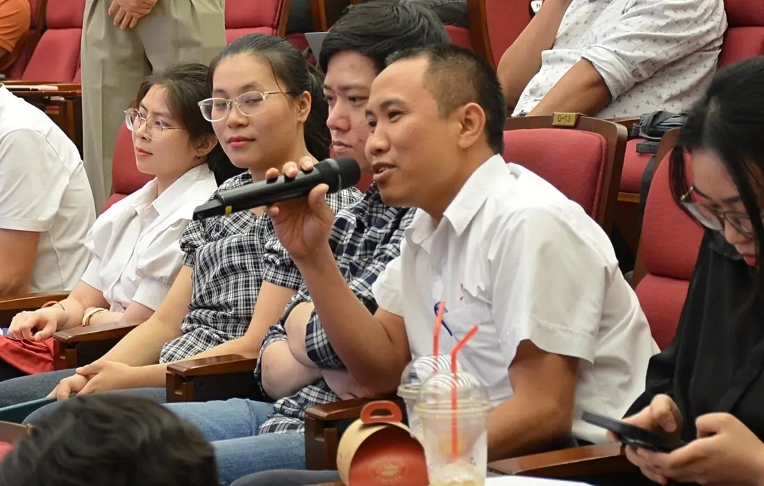 Ảnh: Đại diện doanh nghiệp đặt câu hỏi về giải pháp BRAVO ERP ứng dựng trong thực tiễn, giải quyết các bài toán tại doanh nghiệp