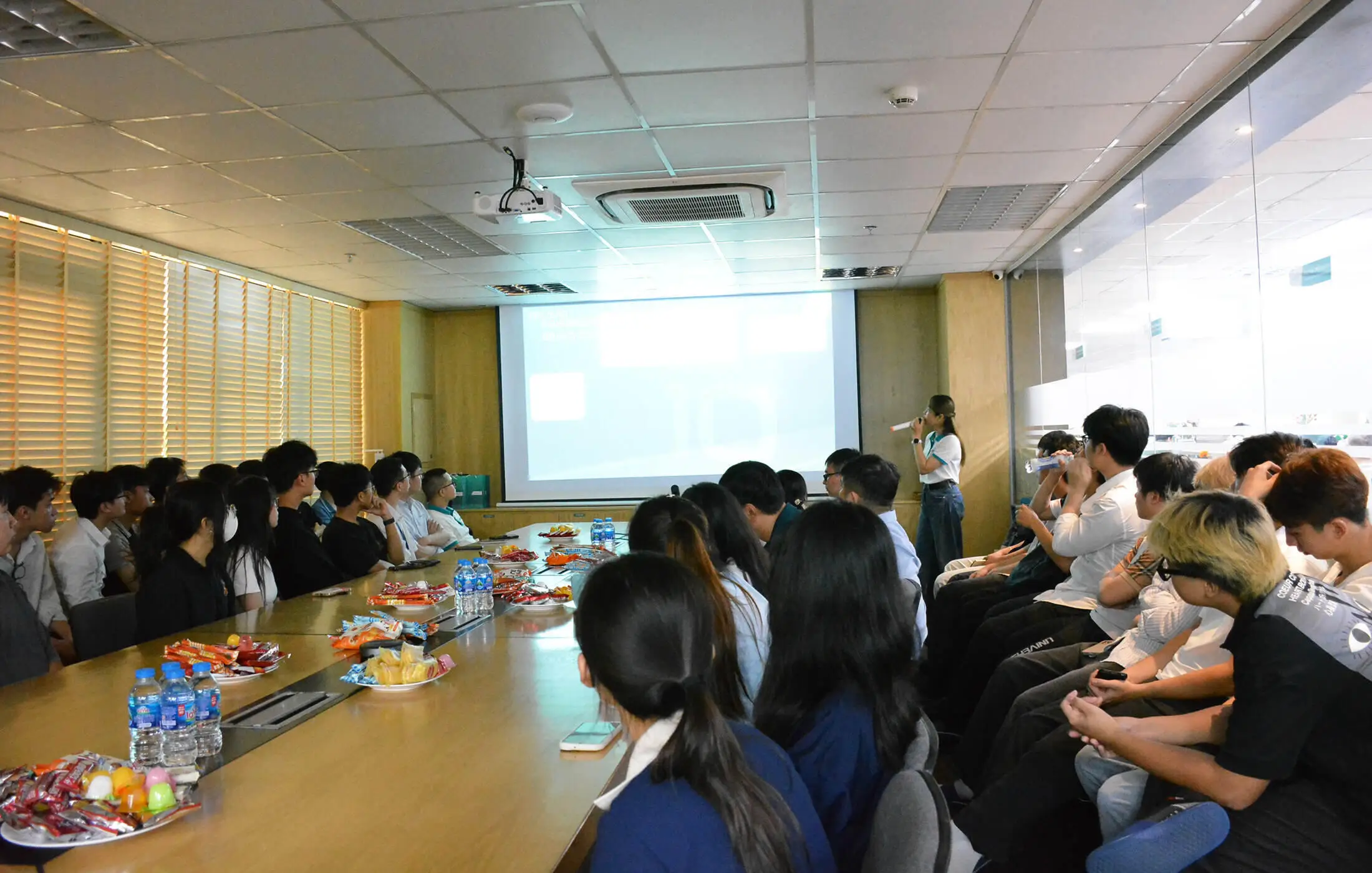 Dẫn dắt và đồng hành chính cùng các bạn sinh viên trong chương trình lần này là anh Nguyễn Trùng Dương – Trưởng phòng Cloud và Hạ tầng và chị Nguyễn Ngọc Quỳnh – Phụ trách Nhân sự. Với sự nhiệt tình, thân thiện và kinh nghiệm dày dặn, các anh chị không chỉ giới thiệu về hoạt động của công ty mà còn chia sẻ nhiều thông tin hữu ích về quy trình tuyển dụng, các vị trí việc làm phù hợp với sinh viên khối ngành công nghệ. Đồng thời đưa ra lời khuyên bổ ích về những kỹ năng cần thiết để sinh viên có thể tự tin hội nhập môi trường làm việc chuyên nghiệp.