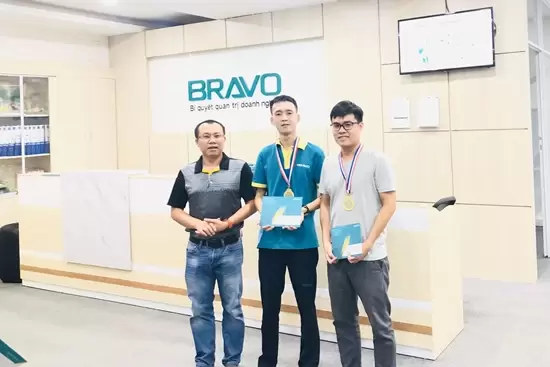 Khen thưởng tiếp theo được dành cho nhóm CBNV thuộc phòng Kinh doanh BRAVO ĐN. Quyết định này được dựa trên thành tích xuất sắc cùng sự nỗ lực rất lớn của các CBNV khi thực hiện đàm phán thành công việc ký kết hợp đồng cung cấp Phần mềm ERP BRAVO cho doanh nghiệp đối tác lớn.