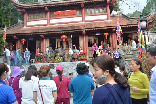Sau 2 giờ di chuyển, cảnh sắc núi rừng Tây Thiên Tam Đảo đã hiện ra trước mắt một màu xanh mướt, trong lành dễ chịu. Điểm tới đầu tiên, đoàn dừng xe lễ thăm Đền Trình, là nơi trình diện đầu tiên của bất kỳ ai khi lên Tây Thiên. Sau đó, đoàn tiếp tục chương trình thăm quan ngắm cảnh sơn thuỷ Tây Thiên, lễ đền Trung, đền Thượng, và đền Mẫu. Tới thăm Tây Thiên những ngày đầu năm mới, lại vào thời điểm cuối tuần, do vậy lượng du khách ở đây cùng với đoàn đã đông lại càng thêm đông đúc.