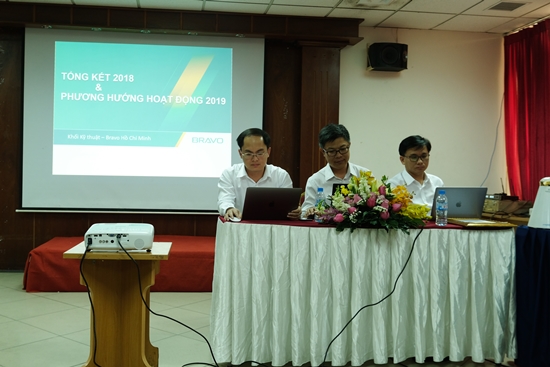 Hội nghị đã được diễn ra với nội dung gồm 4 phần: báo cáo các vấn đề đã thực hiện trong năm 2018; chỉ ra mặt tồn đọng; sơ bộ tình hình phát triển của BRAVO giai đoạn 2010-2018; nhận định thị trường và đăng ký các mục tiêu cần đạt năm 2019. Chủ trì tại cuộc họp, ông Đào Mạnh Hùng – Giám đốc công ty một lần nữa biểu dương con số thành tích về hoàn thành kế hoạch năm của các vùng miền. Trong đó, riêng với BRAVO HN, cả 2 khối phòng ban là Kinh doanh và Triển khai đều hoàn thành vượt mức kế hoạch. Đối với chỉ tiêu khối Kinh doanh, đạt mức 147% kế hoạch và tăng trưởng 132% với 2017. Khối Kỹ thuật triển khai hoàn thành xuất sắc, nghiệm thu nhiều dự án lớn đạt 131% kế hoạch. Phòng Bảo hành cũng hoàn thành xử lý 96% các giao dịch phát sinh. Đây đều là những con số khả quan và đáng tự hào đối với các thành viên BRAVO HN.