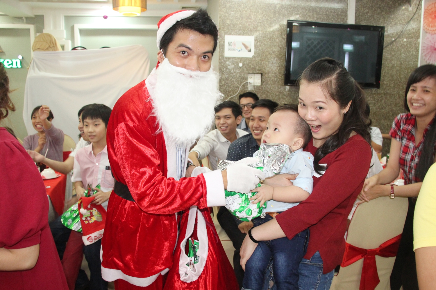 Không gian tràn ngập màu đỏ đặc trưng của Noel, từ màu đỏ của quà, đồ trang trí cho đến trang phục của mọi người. Không chỉ có ăn uống, bữa tiệc của BRAVO-HCM còn có nhiều màn trò chơi và tiết mục sôi động. Sự xuất hiện của ông già Noel và những chú tuần lộc tặng những món quà toàn là “hàng độc” và vui nhộn cho mọi người làm cho không khí buổi tiệc càng đặc biệt hơn.