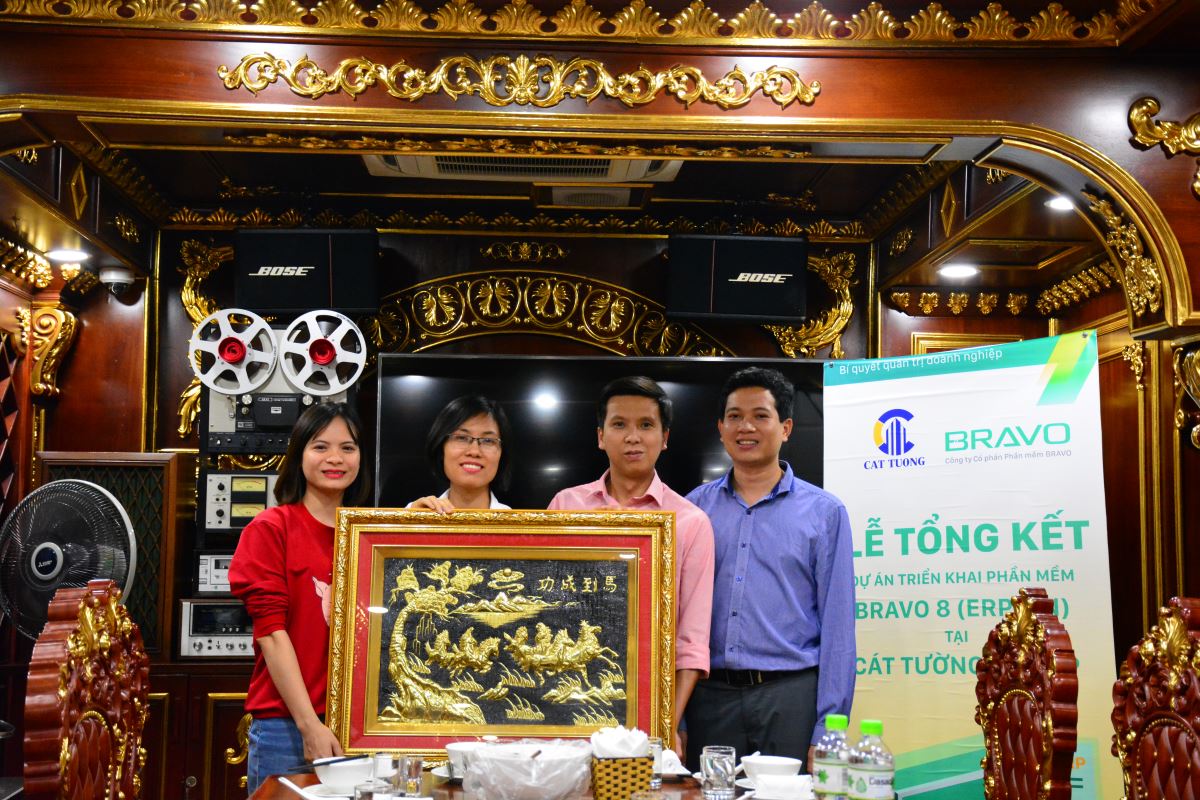 Về phía BRAVO, ông Lê Anh Tuấn – Trưởng ban dự án đã gửi lời cảm ơn chân thành đối với đối tác, trong quá trình hợp tác “đội ngũ nhân sự của Cát Tường Group đã có tinh thần làm việc và trách nhiệm cao, cố gắng cùng đồng hành với BRAVO, kịp thời cập nhật các dữ liệu, để đến hiện tại, Cát Tường Group đã đạt thành quả xây dựng một công cụ hữu ích để hỗ trợ doanh nghiệp trong quá trình vận hành”. Thông qua buổi lễ, ông Tuấn đã tổng kết lại dự án, những thuận lợi và khó khăn trong quá trình triển khai dự án, kết quả đã đạt được và đề xuất phương án sử dụng phần mềm một cách tối ưu trong thời gian tới.
