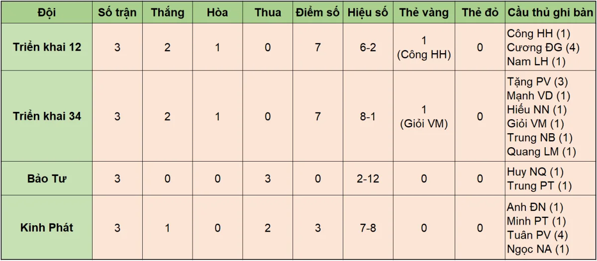 Bước vào Hiệp 1, Triển khai 12 với thực lực và kết quả ở thời điểm hiện tại được đánh giá cao hơn Bảo Tư, nhưng thật bất ngờ thế trận trên sân lại nghiêng về phía Bảo Tư. Bảo Tư liên tục tấn công, uy hiếp khung thành của Triển khai 12. Nhưng trong một ngày mà thủ môn Công HH của Triển khai 12 chơi xuất thần, liên tục cản phá những pha ăn bàn mười mươi của tiền đạo đội bạn, may mắn đã không xuất hiện.