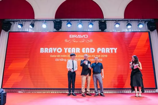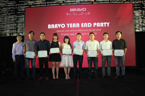 Với sự chuẩn bị và đầu tư công phu từ trước đó gần 1 tháng, BRAVO Year End Party đã được diễn ra thành công với các chương trình đặc sắc: chiếu clip tổng kết năm; phát biểu của Ban lãnh đạo; lễ vinh danh cá nhân, tập thể CBNV có thành tích xuất sắc của năm qua các danh hiệu: Lao động giỏi; Lao động tiên tiến; Lao động tiêu biểu; Cán bộ quản lý xuất sắc; Cán bộ quản lý giỏi; Chiến sĩ thi đua năm 2018. Đồng thời, trao tặng danh hiệu Tập thể lao động giỏi cùng phần thưởng cho Tập thể phòng Bảo hành; danh hiệu Tập thể lao động xuất sắc cho Tập thể Phòng Kinh doanh và Ban Kỹ thuật triển khai vì hoàn thành vượt mức kế hoạch năm cùng nhiều nỗ lực tích cực cho sự phát triển chung của BRAVO.