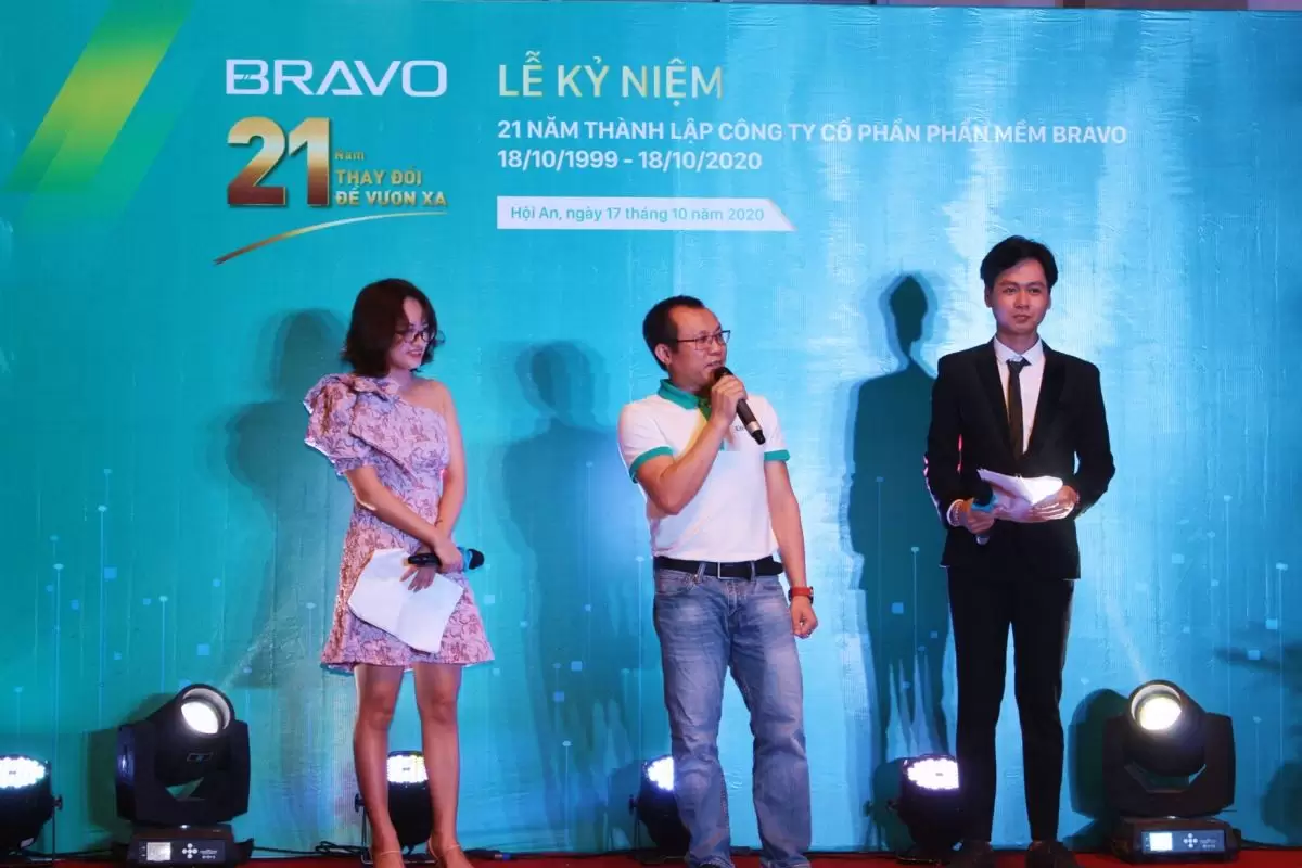 Tối 16/10, Gala dinner – một đêm gợi nhớ về hành trình của BRAVO 21 năm qua đã long trọng được tổ chức. Mở đầu chương trình là những chia sẻ đầy xúc động của anh Tôn Minh Thiên – GĐ. BRAVO chi nhánh tại TP. HCM về tuổi mới, hành trình mới của công ty. Anh cũng bày tỏ lời cảm ơn sâu sắc đến những đồng nghiệp đã luôn kề vai sát cánh, cùng làm nên những thành tích tự hào, đưa BRAVO vững bước trên con đường phát triển. Cũng trong lời khai mạc, anh Tôn Minh Thiên đã trân trọng cảm ơn sự tin tưởng, hợp tác của các bạn đối tác; sự giúp đỡ nhiệt tình của Quý Khách hàng suốt những năm qua, giúp BRAVO ngày càng đứng vững trên thị trường.