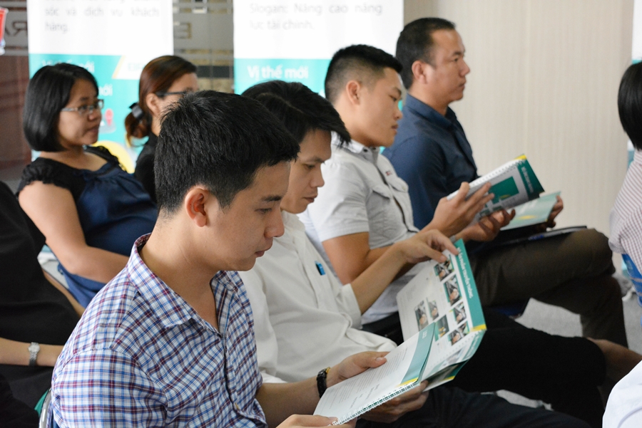 Các thành viên theo dõi hệ thống nhận diện thương hiệu mới qua cuốn guidelines