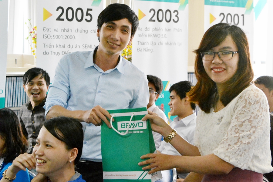 Buổi lễ diễn ra tại Văn phòng BRAVO Đà Nẵng, với sự góp mặt của đại diện Ban lãnh đạo công ty: anh Đào Mạnh Hùng – giám đốc, anh Nguyễn Đức Sơn – trưởng VPDD BRAVO-ĐN, anh Đoàn Trắc Khuê – trưởng phòng Marketing, cùng tất cả các thành viên BRAVO-ĐN.