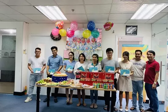 Mở đầu chương trình, cán bộ phụ trách Nhân sự công ty đã lên gửi lời chúc mừng đến các thành viên có sinh nhật trong tháng 9. Tiếp đó, đại diện Ban lãnh đạo, anh Đặng Quang Dũng đã lên trao tận tay những món quà ý nghĩa cho mọi người.