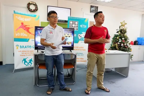 Đúng 11h sáng 2/12, tại sảnh văn phòng HCM, đại diện Ban tổ chức – anh Thái Phương Bắc đã lên phát biểu, chính thức tuyên bố lý do và khai mạc Hội thao BRAVO-HCM 2017. Trong ngày đầu tiên, là lượt thi vòng loại trực tiếp của môn cờ Caro và PES, cùng khai mạc giải bóng đá nam nữ kết hợp… đã đem tới một bầu không khí thể thao sôi động, cuồng nhiệt từ khắp văn phòng BRAVO-HCM tới sân Cung văn hóa lao động.