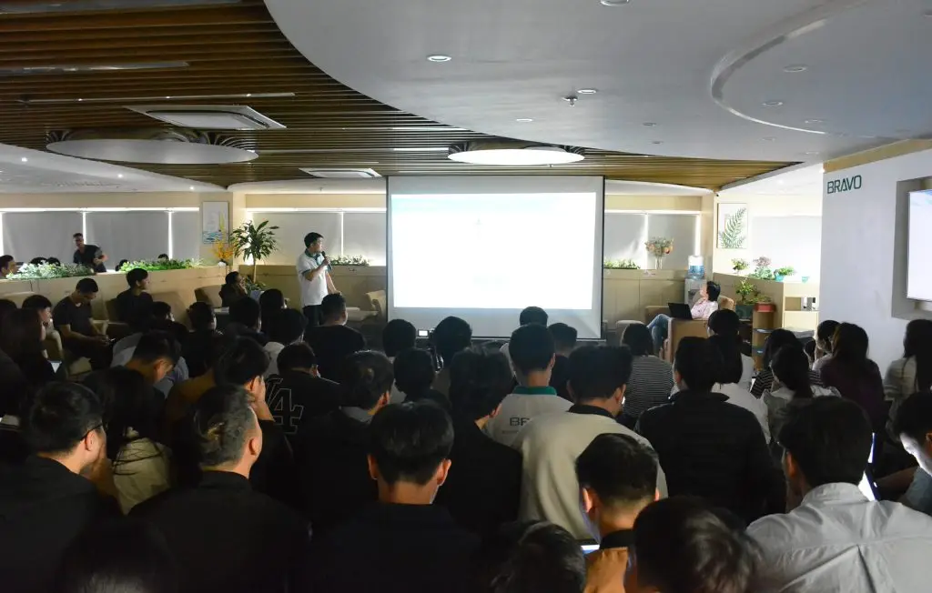 Ảnh: Buổi seminar tại sảnh lớn văn phòng BRAVO HN thu hút sự tham gia của đông đảo thành viên từ các phòng ban.
