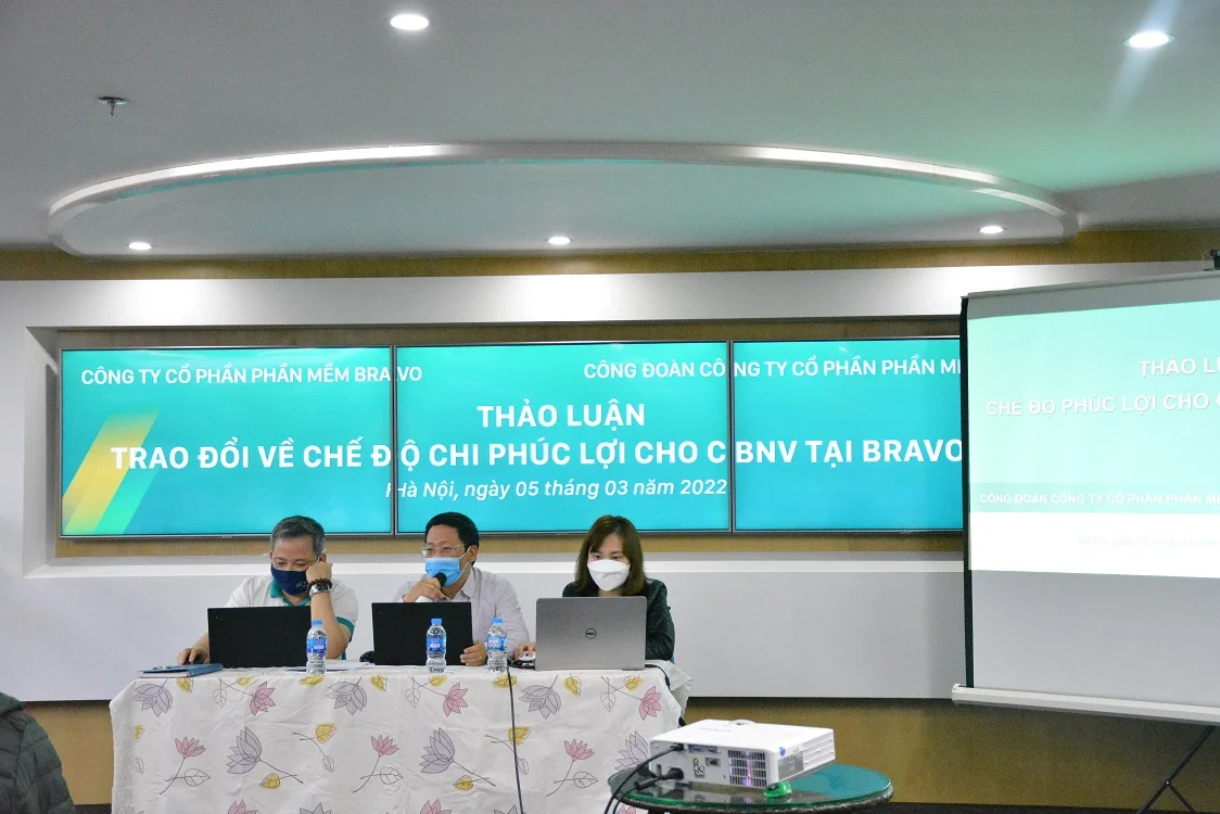 Ngày 05/03 vừa qua, tại BRAVO Hà Nội đã diễn ra buổi Thảo luận trao đổi về chế độ chi phúc lợi cho CBNV, do sự tổ chức của Công ty và Công đoàn Công ty Cổ phần Phần mềm BRAVO.