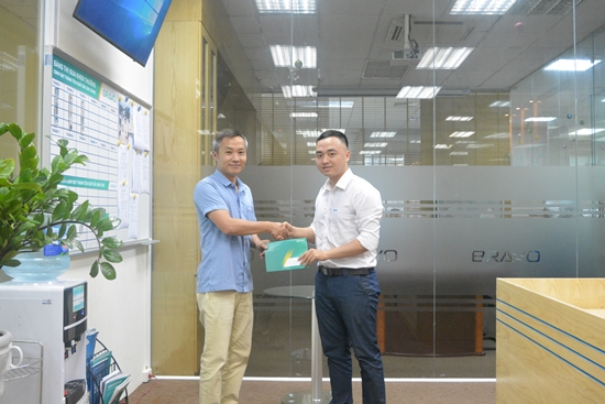 Cũng trong sáng 07/05, anh Ngô Đình Hải – Trưởng phòng Công nghệ cũng dành tặng lời khen, phần thưởng khích lệ tới anh Vũ Mạnh Giỏi – chủ nhân của Giải Ý nghĩa, giải “Khuyến khích đóng góp ý kiến cho phát triển sản phẩm” tháng 4.