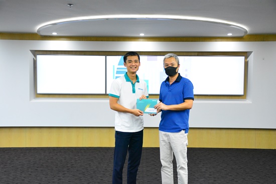 GĐ. Đào Mạnh Hùng trao cúp cho các CBNV có thành tích làm việc xuất sắc tháng 7/2020